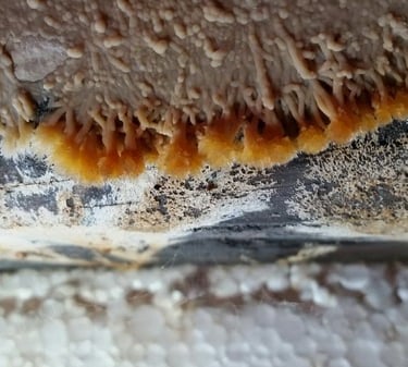 Les champignons lignivores, comme la mérule, le coniophore, ou encore la lenzite, attaquent silencieusement les structures en bois de nos habitations : charpente, plancher, poutres, etc.